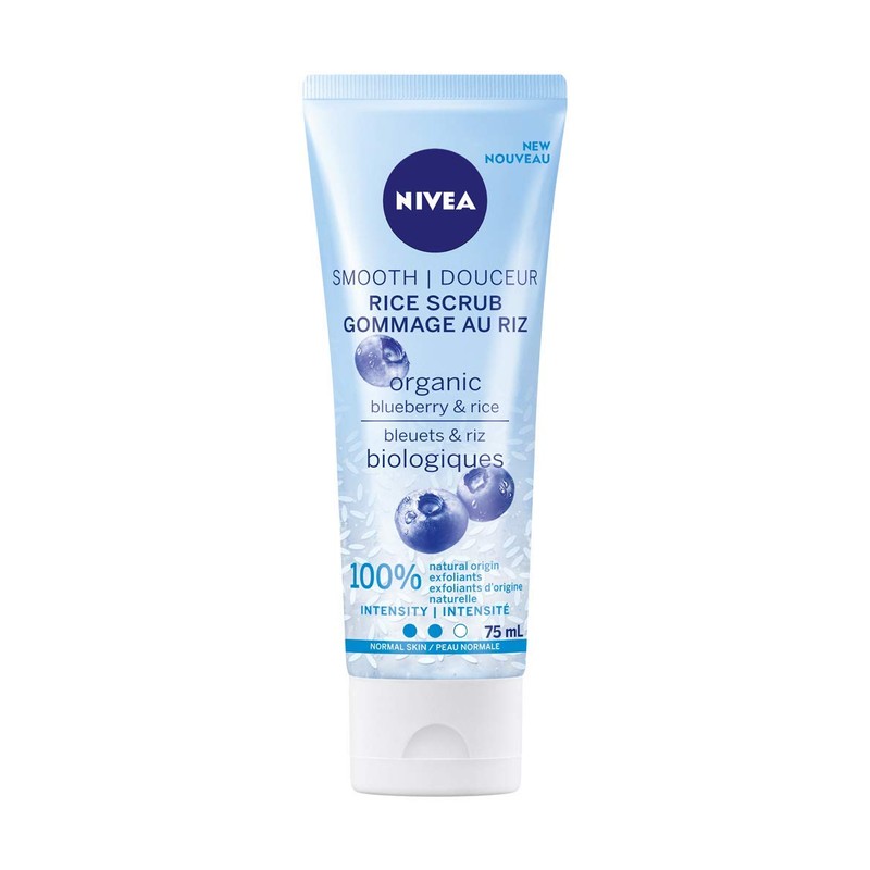 • product details - nivea rice scrub blueberry & rice, 75 ml, natural exfoliator for normal skin, free of microplastics