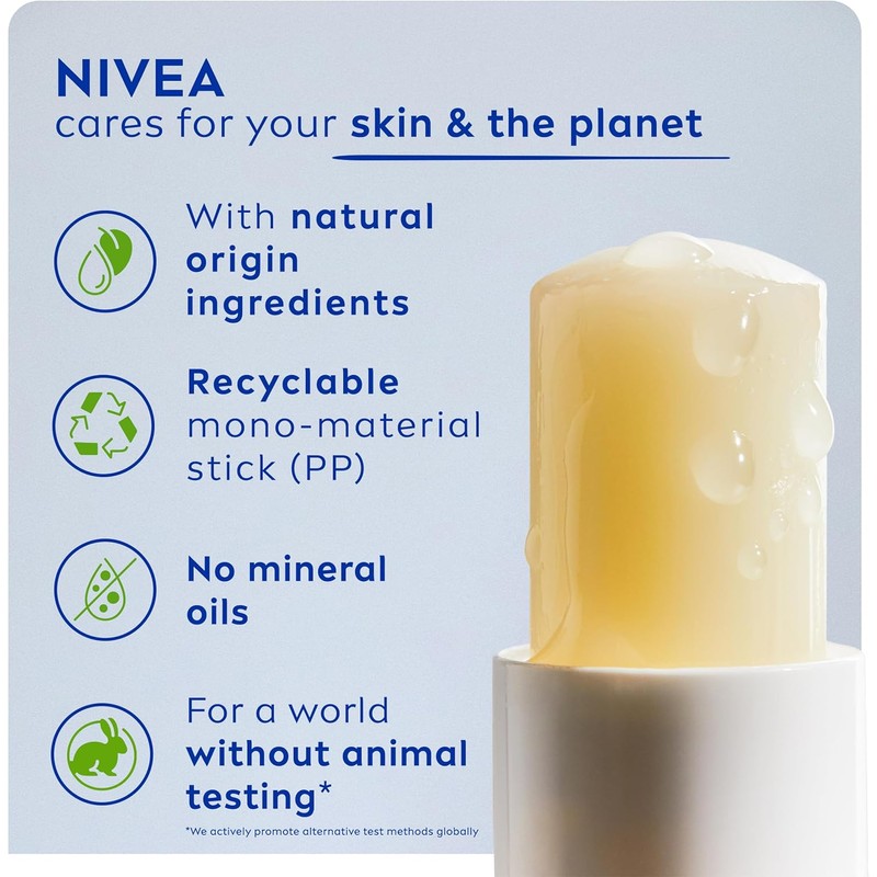 24-Hour Moisture – NIVEA’s lip balm provides water-resistant sun protection while delivering 24-hour hydration to keep lips soft, smooth, and free of white residue.
