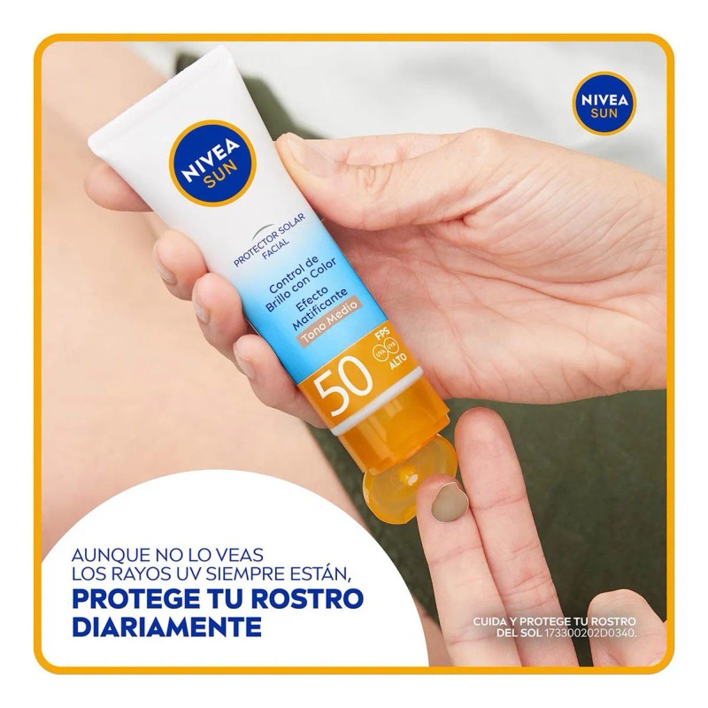NIVEA SUN Protector Facial Control De Brillo Con Color Tono Medio FPS50 50ml Efecto Mate con textura ligera de rpida abosrcin, dermatolgicamente...