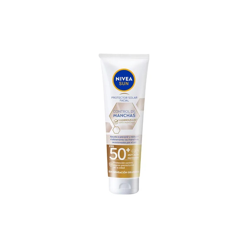 Protector solar facial NIVEA SUN Luminous630 FPS 50 (40 ml) 🧴☀️ con ácido hialurónico y vitamina E 💧🌿. Protege, reduce manchas 🌤️ y deja la piel fresca, ligera y sin sensación grasosa ✨.