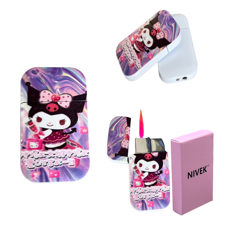 NIVEK Kulomi Lighter Kitty KT Torch Lighter Pink Flame Pocket Refillable Kawaii Cute Windproof Flame (Cat, Rabbit, Melody, Duffy) (A3-Kulomi Script)