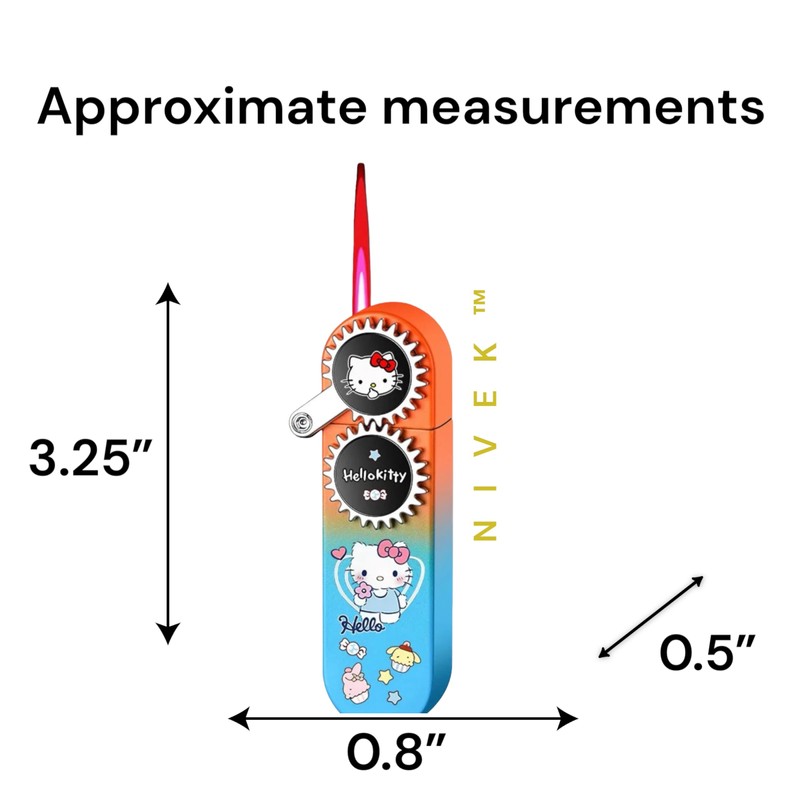 NIVEK Rocker Arm Lighter Gear Dial Lighter Kitty KT Cat Melody Kulomi Japanese Character Kawaii Blue Flame Jet Torch Refillable Black with Silver Rocker Dial (Orange Blue Kitty)