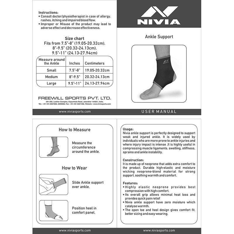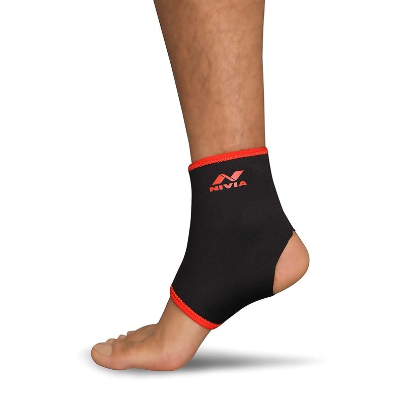 NIVIA Orthopaedic Slip-in Ankle Support (Black/Red, Size - Small) | Material - Neoprene/Polyester | Pain Relief, Gym, Sports, Exercise, Workout, Cycling