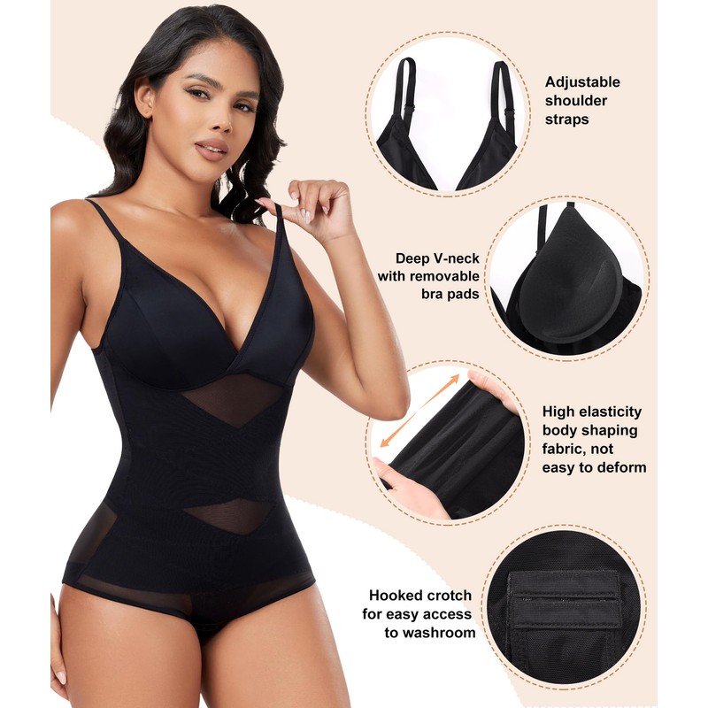 - Built-In Bra Bodysuit with Removable Pads & Adjustable Straps:Our one-piece bodysuit has a built in bra with removable bra pads, V neck bra bodysuit is comfy,but also delivers that lift breast gently,you don’t have to wear a bra in addition.The adjustable straps bodysuit for women help push up bust and adjust its degree of tightness. keep the clean line of your body, increase feminine charm and confidence.