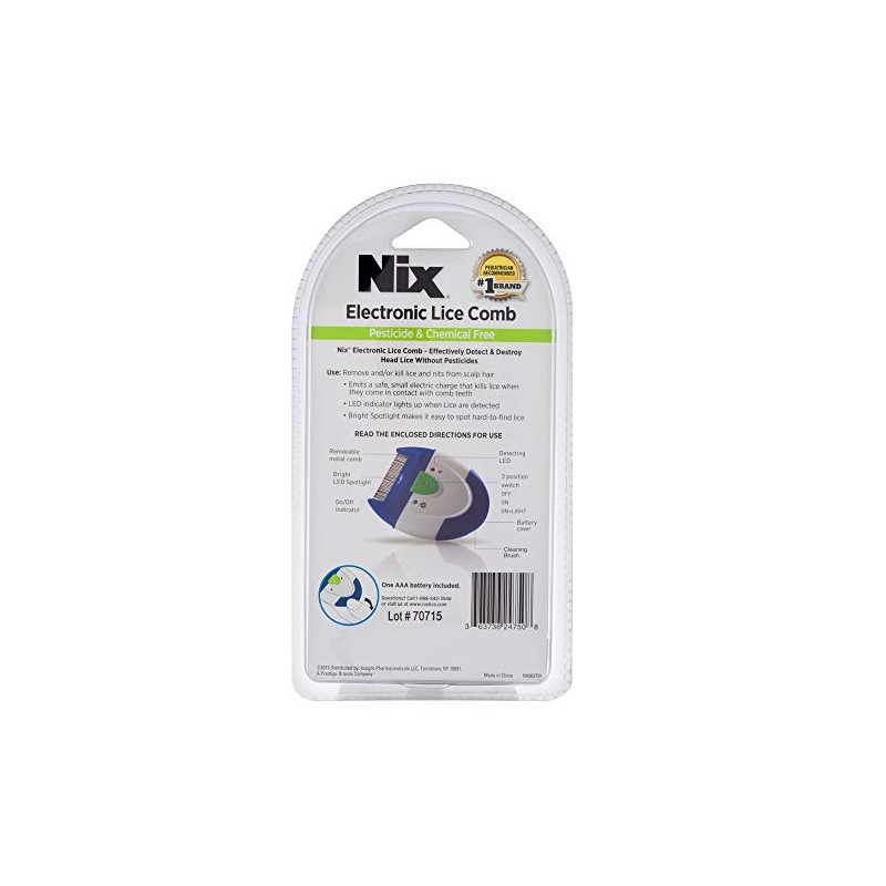 - No chemicals or pesticides.Nix Electronic Lice Comb is for use on dry head hair and is safe for use on children 2plus.Nix is the No.1 pediatrician-recommended lice removal brand Pediatrician survey data on file.Contains 1 Nix Electronic Lice Comb and 1 AAA battery