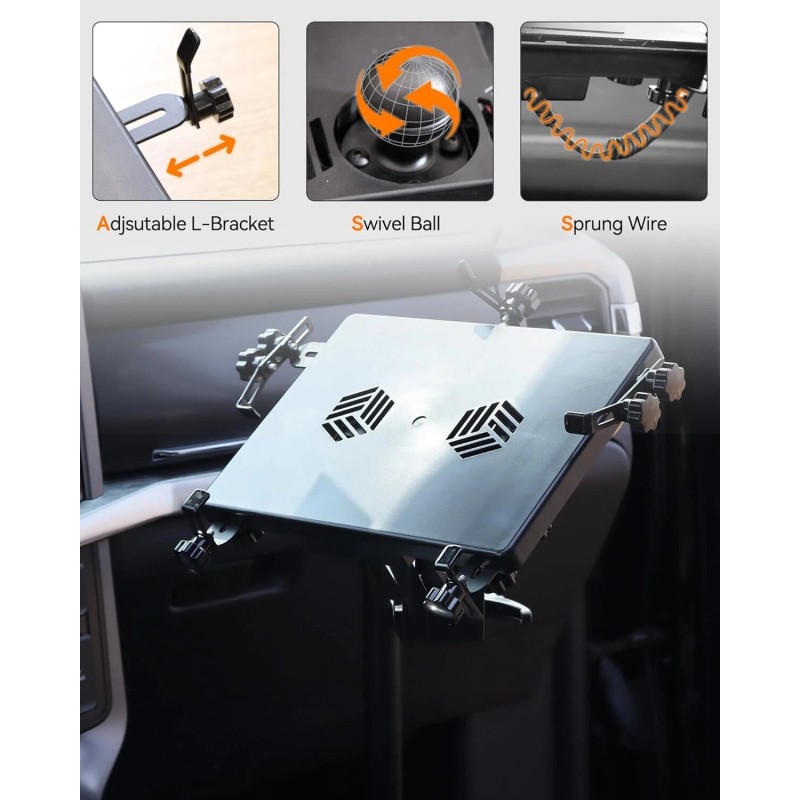 đăHigh Compatibilityă Car laptop stand is compatible with 2022-2024 Toyota Tundra, 2003-2010 Ford Focus. No need to drill holes, just install the base bracket to the original co-pilot base track đ ăDouble Turboă Vehicle laptop mount has 2 cooling fans, USB powered to prevent overheating, increasing airflow and cooling your laptop sufficiently and timely. đ ăMulti Joint Designă 3 Adjustable locking joints can adjust laptop to the suitable postion. 1 Telescopic pole can adjust the whole part up and down freely. 5 adjustable tray clamps - can hold laptop up to 17". đ ăQuick Disconnectă Telescopic pole has quick disconnect mechanism, make it easy to creat a comfortable passenger area by removing the thumb screws to detach the stand from base. đ ăPremium Materială Car laptop mount is made of high-quality aluminum and steel materials with antioxidant powered coating, ensure solid construction and high strength, avoid wobbling or dropping while driving. đă Warranty and After-Salesă If you're not 100% feel satisfied with this item, please contact us and we will help you within 24 hours. |