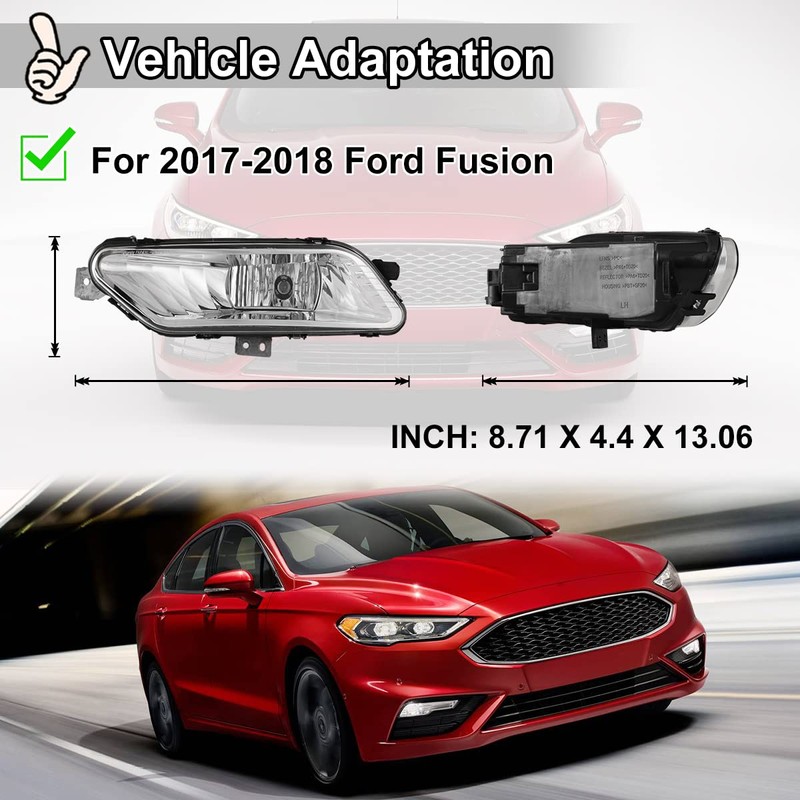 • ✅ [ Fully Direct OEM Fitment ] Fog light lamp replacement fit for 2017-2018 Ford Fusion. Meet OEM requirements, Direct replacement style fog lights.