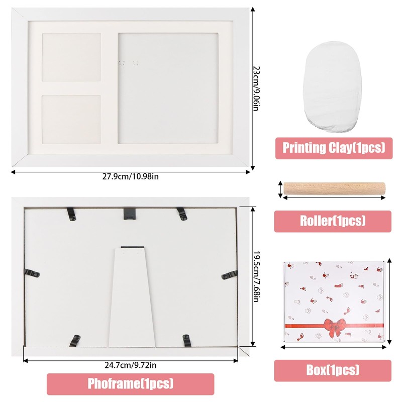 NIXRET Paw Print Set Dog, Paw Print Set Cat with Picture Frame, Pet Photo Frame Wood with Paw Print, with Memorial Meaning, for Pets, Newborn and Keepsake Gift