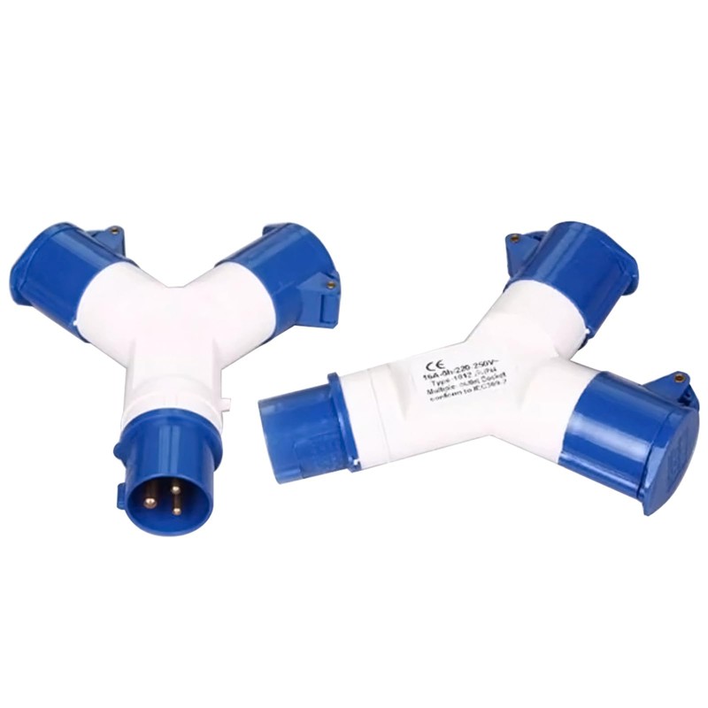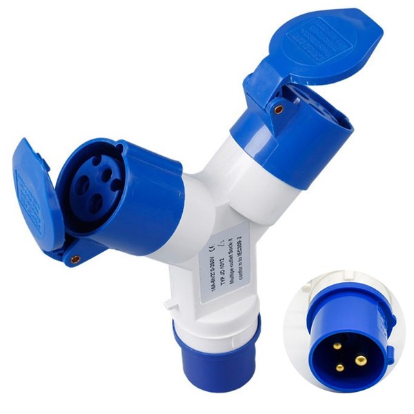 NIYATA 1 Pcs Caravan Hook Up Cable 16 Amp Splitter, 16 Amp Splitter, Caravan Hook Up Socket, Industrial Socket Connector, Caravan Connectors, Multifunctional Industrial Socket One in Two Out (Blue)