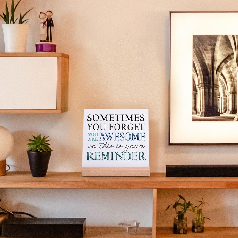 - 【Inspirational Gifts】 - The sentence "Sometimes you forget you're awesome, so this is your reminder" is printed on the motivational signs for desk, which can show your attitude towards life, at the same time, it can also provide you with confidence and strength in future life suitable for display in your own room or as a gift for important people.