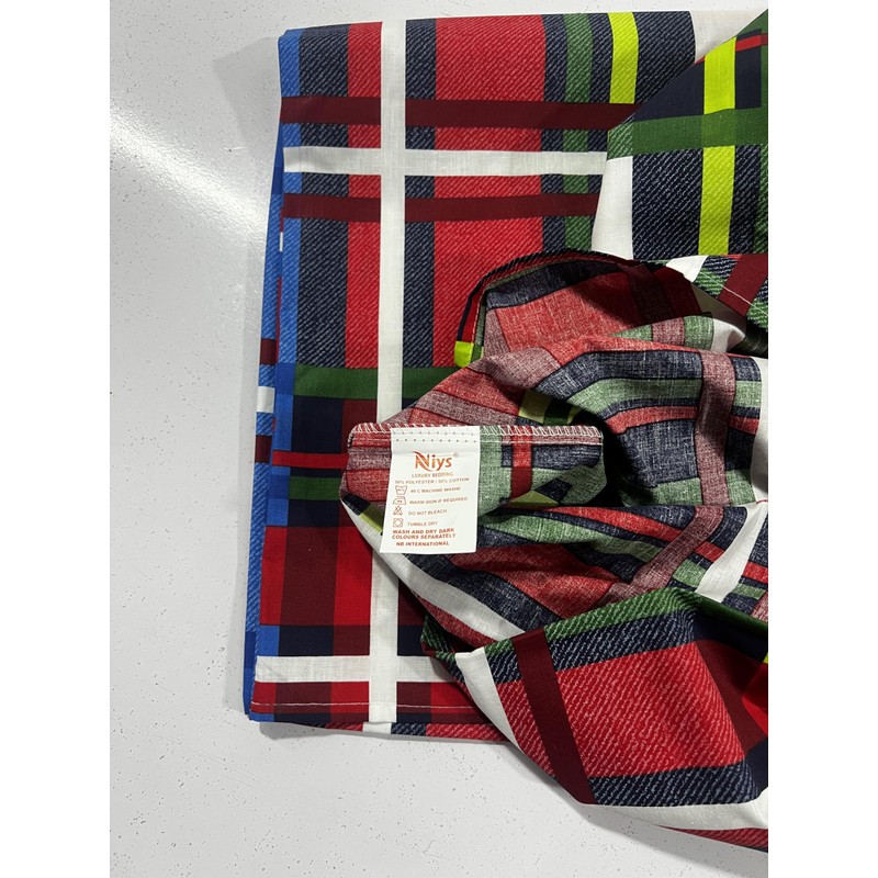NIYS Luxury Bedding Percale/Poly Cotton Printed pillow cases 2 Pack Standard Size 75 * 50 Soft Breathable Hypoallergenic Pillow cover with Envelope Closure (Red Check)