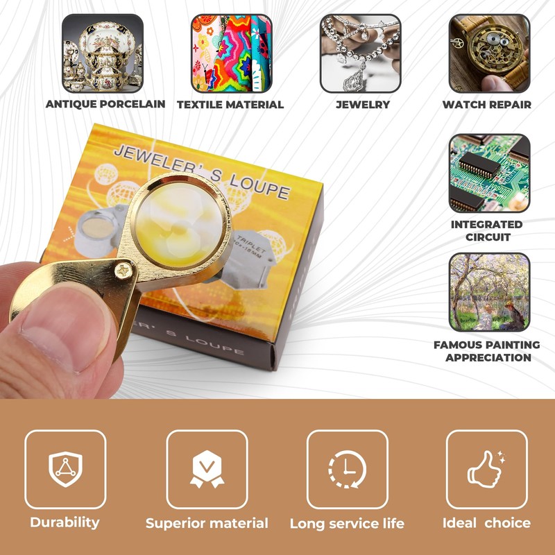 NIZEAMI 10x Magnifying Magnifier Glass Jewellers Eye Foldable Jewelry Loop Loupe(Golden)