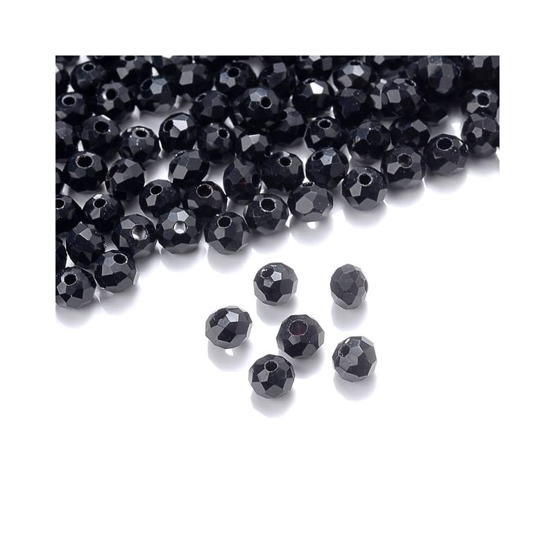 Niziky 330PCS Briolette Crystal Glass Beads for Jewelry Making, 8mm Jet Black Faceted Briolette Rondelle Glass Beads with Hole, Glass Crystal Spacer Beads for DIY Crafts Projects