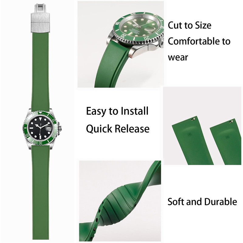 - High-quality material: made of high-quality fluororubber. It has a higher density than conventional rubber or silicone strap on the market, is softer, more skin-friendly and can be bent as desired. And the longer you wear it, the more comfortable it will be. Waterproof, durable, dust-free fluororubber strap after wearing for a long time, it is still like a new watch strap. Perfect for outdoor fitness, sports, any kind of training or daily use.