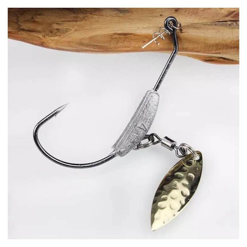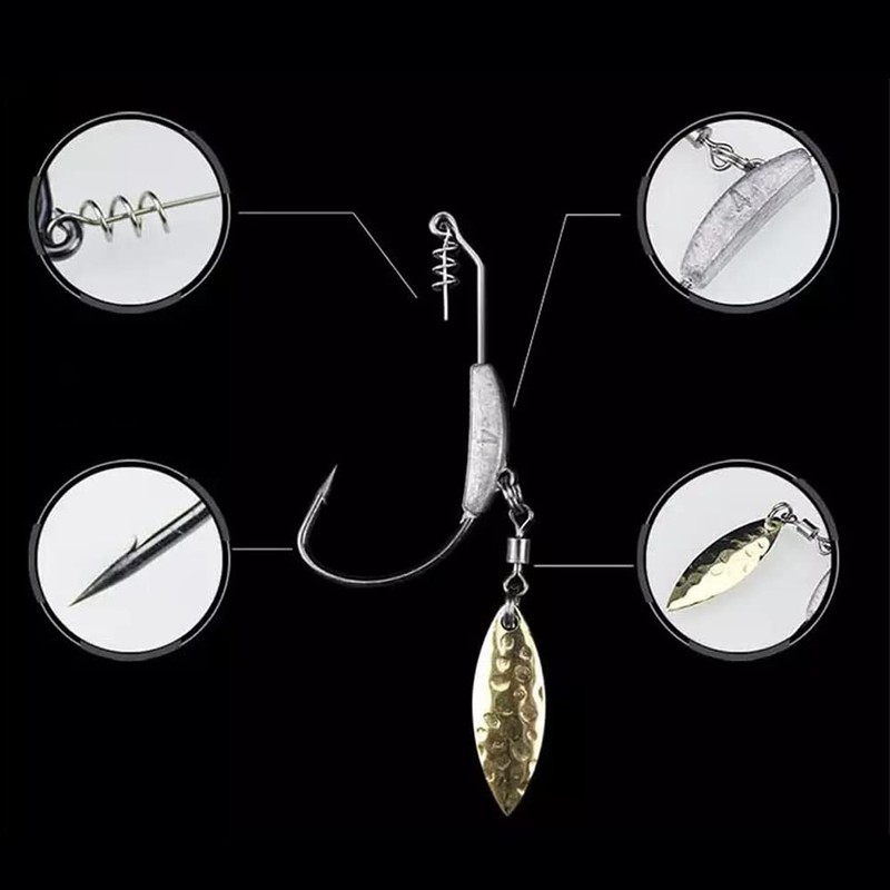 - Offset hook with spinner blade: combine the advantages of offset hooks and jig spinners! Make your lures even more attractive with offset hooks and spinner blade for maximum attraction and appeal as a superior alternative to standard jig hooks