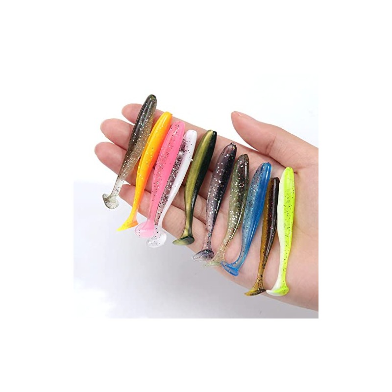 - Fishing rubber fish: the fishing set with rubber bait is the ideal spinning fishing set for any season and weather. The bait assortment allows you to adjust the bait colour according to the water and weather. Bright colours in cloudy weather and water, dark colours in light weather and water