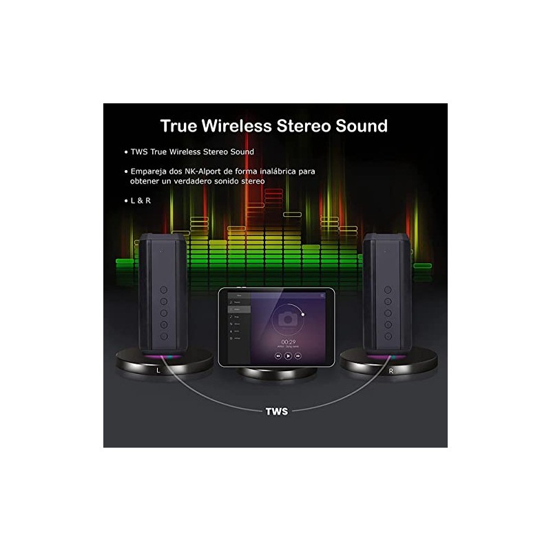 - YOUR MUSIC ON 2 SPEAKERS: Thanks to TWS (True Wireless Stereo) technology, you can play your music on two speakers at the same time without the need for cables.