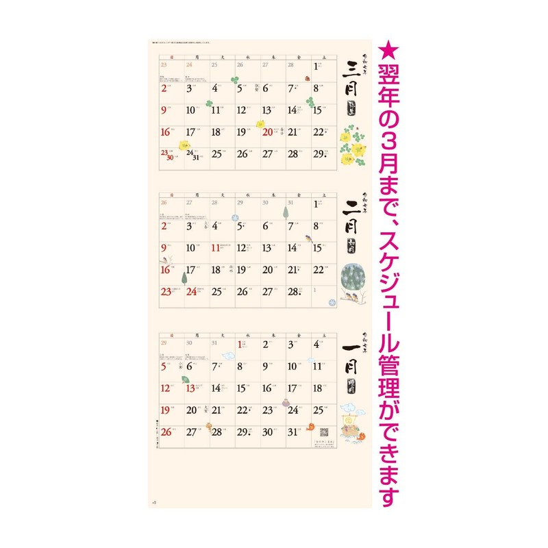 NK911 New Japanese Calendar 2024 Calendar Wall Hanging Japanese Style Letters 3 Months with Chronology