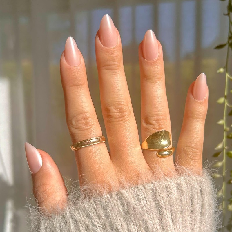 Nka Press on Nails Kit, 30 Premium Quality Reusable Fake False Acrylic Short Almond Press on Nail-Glazed Seashell