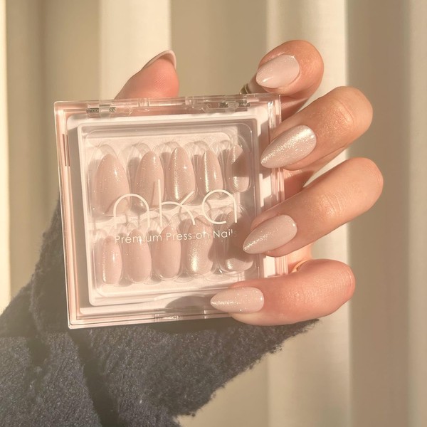NKA Press on Nails Kit, 30 Premium Quality Reusable Gel Fake False Acrylic Press on Nail Shimmer Cateye Short Almond -Falling Star