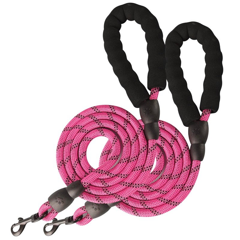 NKAKTSU 犬用ロングリード 夜間反射 360度回転フック付き 小型 中型犬向け 軽量 ナイロン製 多機能ペットリード 散歩 訓練 トレーニング用 しつけ アウトドアに最適 2個セット(ピンク)
