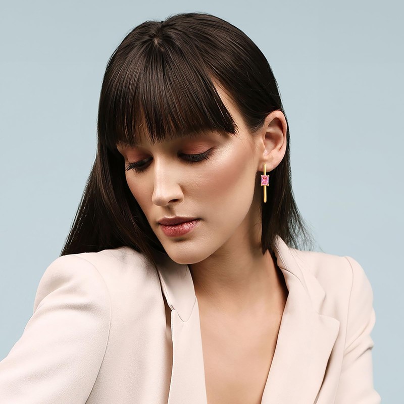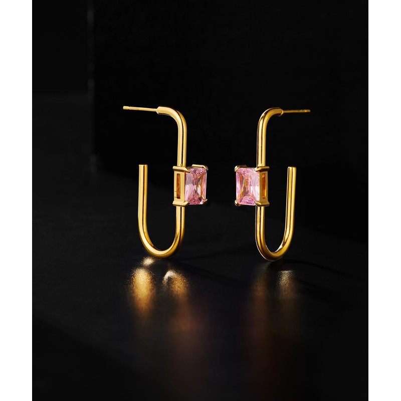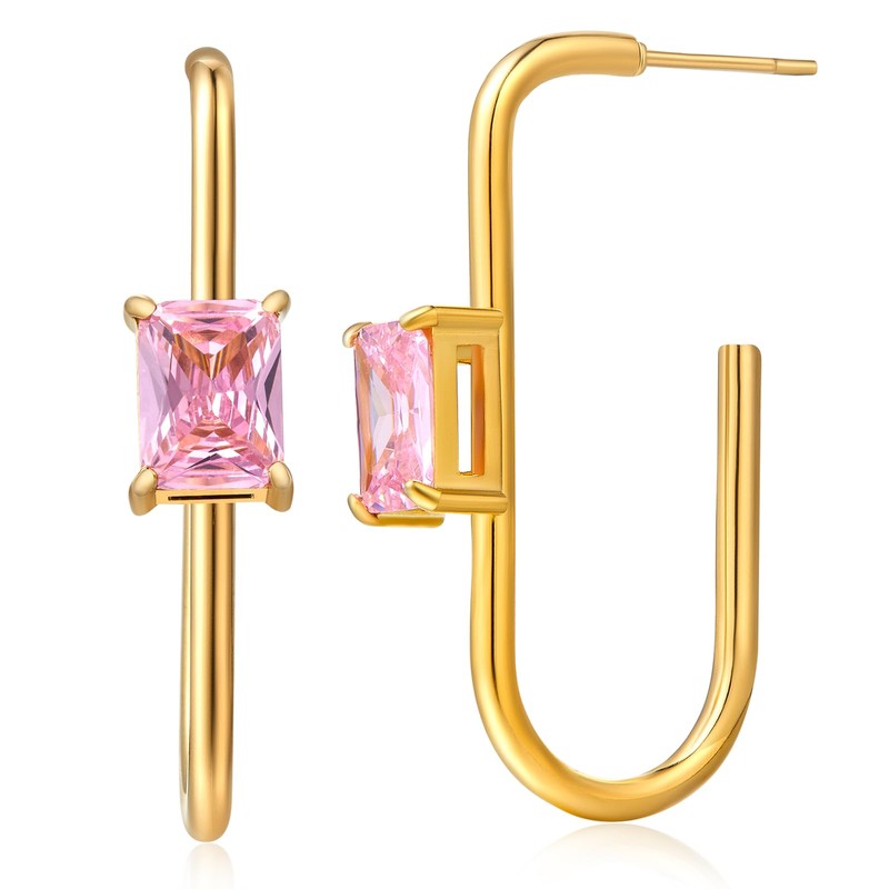 NKBRER Gold Hoop Earrings for Women,Gold Post Square Hoop Earrings, Geometric Rectangle Gold hoop Earrings,CZ Hoop earrings,Open Hoop Earrings, Hypoallergenic Gold Plated Earrings for women Girls, Copper, No Gemstone