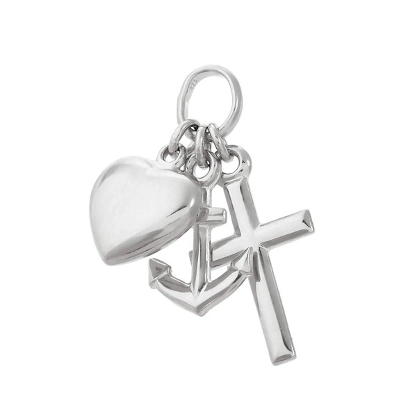 NKlaus 14 mm Faith Love Hope 925 Sterling Silver or 333.585 Yellow Gold and 333 White Gold Pendant, Sterling Silver