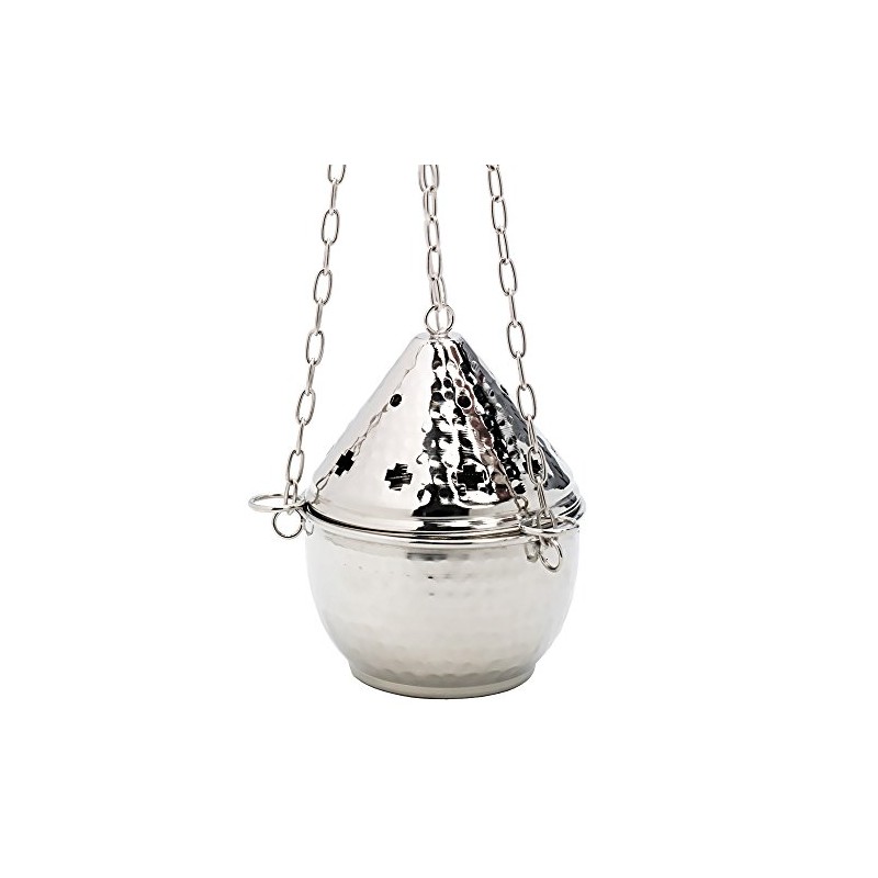 NKlaus censer hanging vessel with chain 80cm incense burner nickel plated hammered 7615