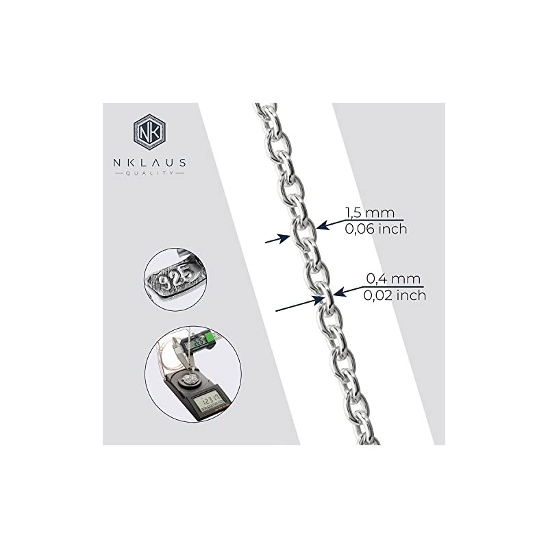 NKlaus Elegant Anchor Chain Round 925 Silver 0.9 mm Wide Necklace Thin Silver Chain, Sterling Silver