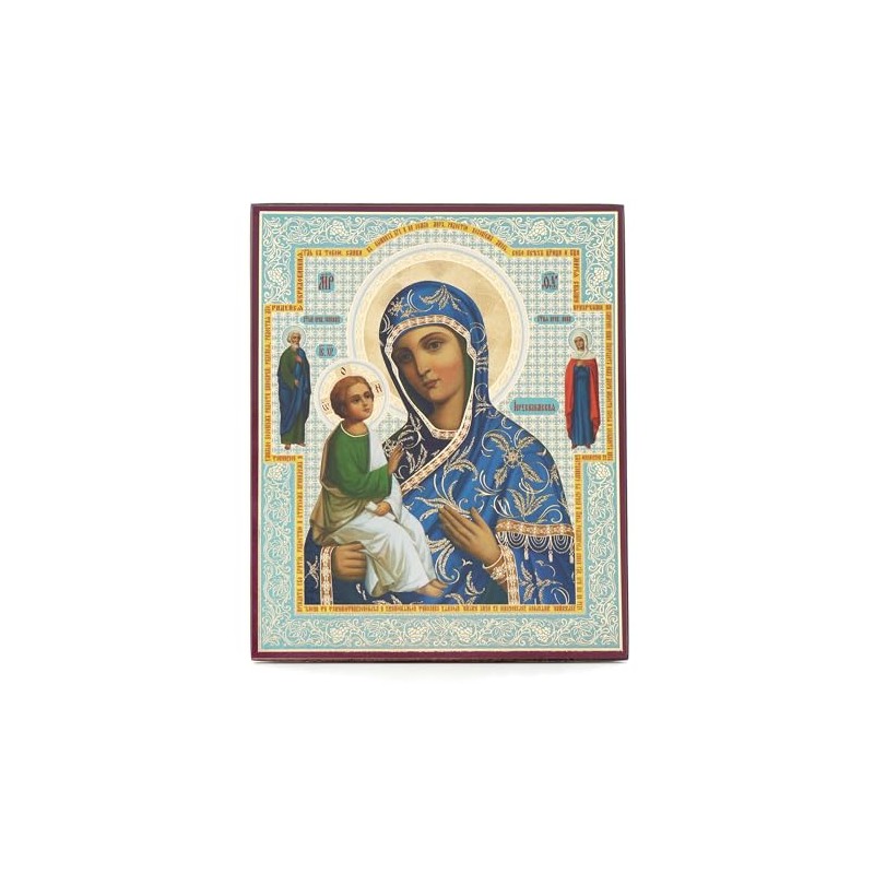 - Diese Holz- Ikone zeigt eine detailreiche Darstellung von Gottesmutter of Jerusalem, gefertigt im traditionellen christlichen Stil.