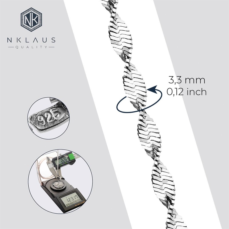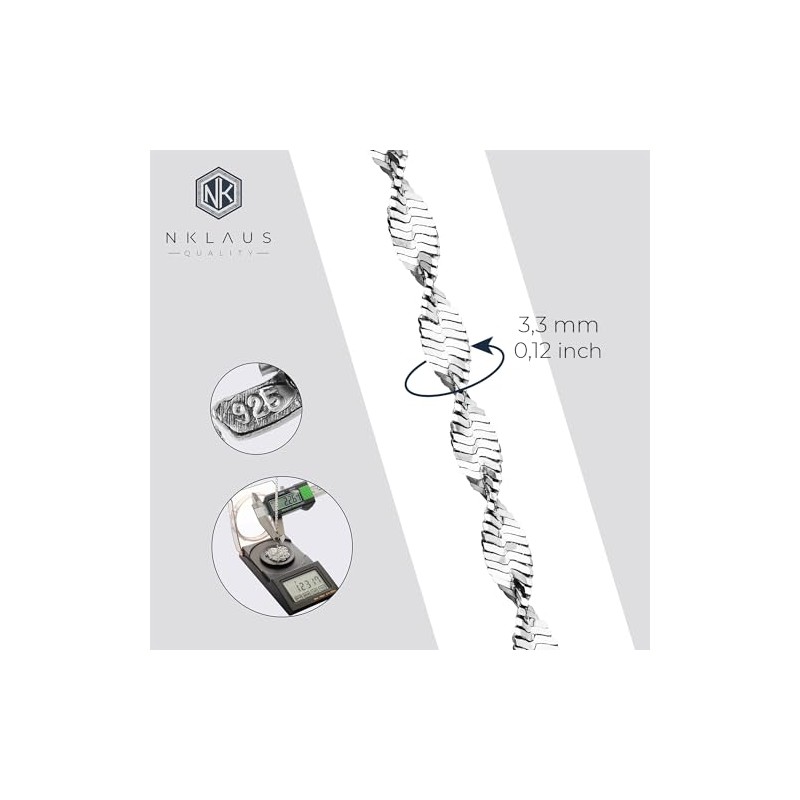 NKlaus Herringbone Pattern: 925 Silver Herringbone Chains, 45 cm, 50 cm, 3.3 mm Width - A Stylish Silver Necklace for Women with a Distinctive Presence, Sterling Silver