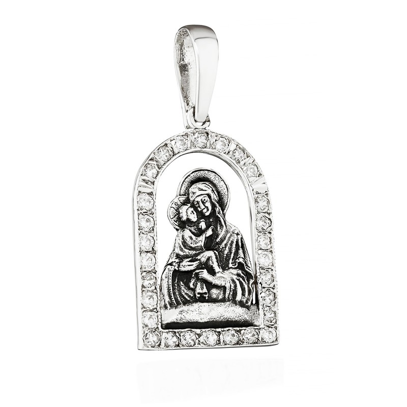 NKlaus Icon Pendant 925 Silver Mother of God of Vladimir 20.5 mm x 13.8 mm Detailed 15503, Silver