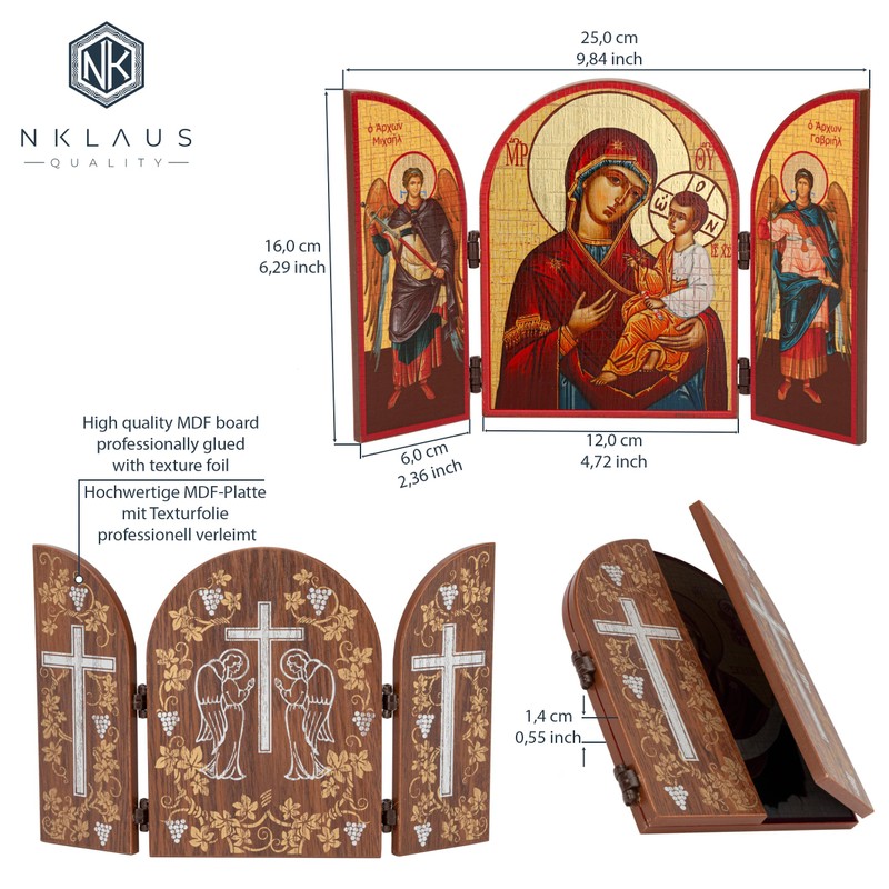 NKlaus Mother of God Quick Hearing Icon Triptych Wood 25 x 16 cm Christian 13812