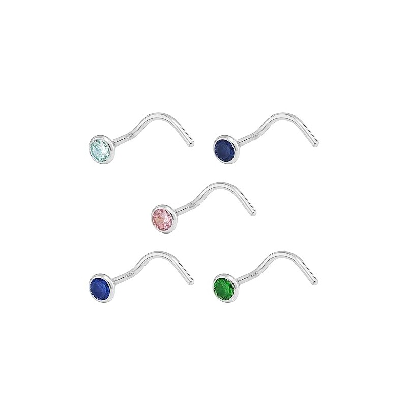 NKlaus Nose Piercing 925 Silver Spiral Shape 3.5 mm Zirconia Various Colours, Silver