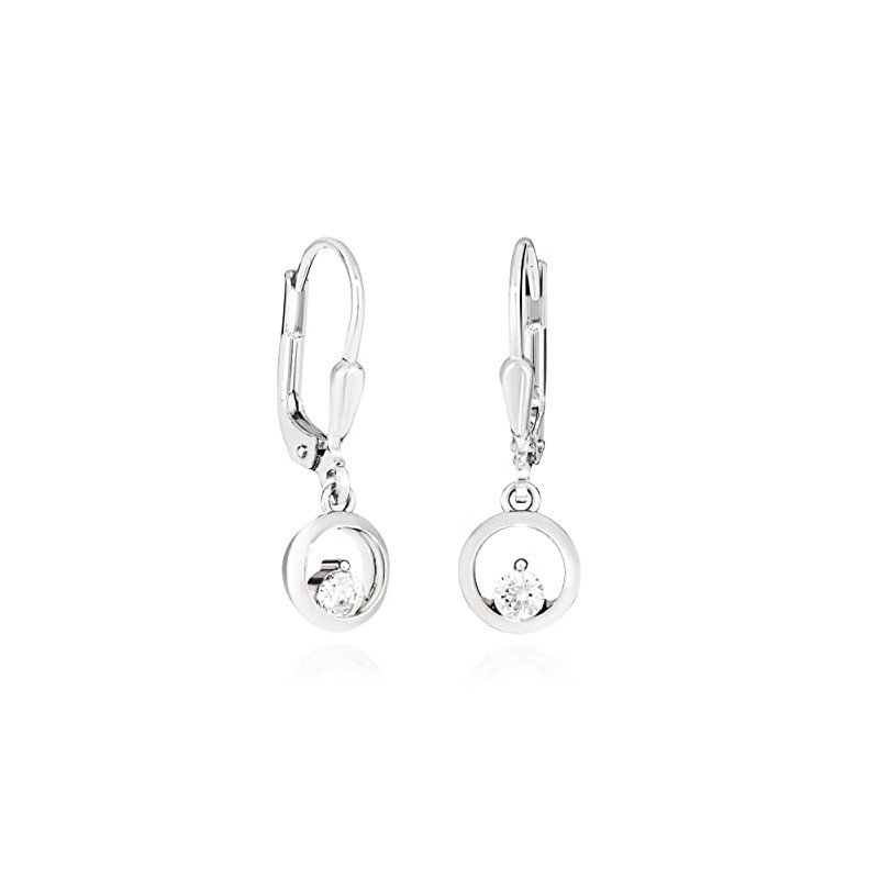 NKlaus Pair of Solitaire Hook Earrings 333 Yellow Gold 925 Silver 7 mm Women's Earrings with White Zirconia, Sterling Silver