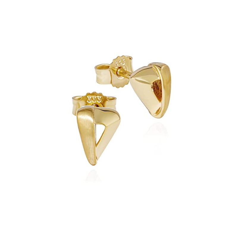 NKlaus Pair of Triangular Stud Earrings 333 Yellow Gold 8 Carat Partially Matt 7 x 5 mm Women's Earrings 13288, Yellow Gold
