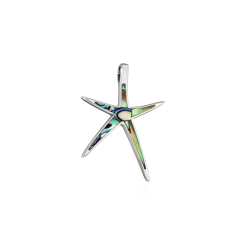 NKlaus Pendant Starfish Abalone Mother of Pearl Blue 925 Silver 34 x 29 mm Amulet 15360, Silver