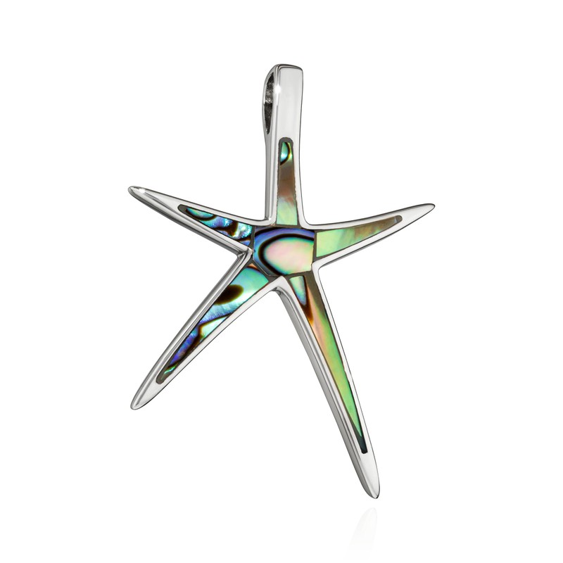 NKlaus Pendant Starfish Abalone Mother of Pearl Blue 925 Silver 34 x 29 mm Amulet 15360, Silver