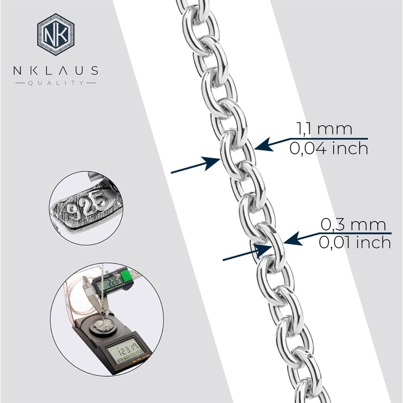 NKlaus Silver Anchor Chain, 925 Sterling Silver, Round Solid Necklace, 1.10 mm Wide, Silver, silver