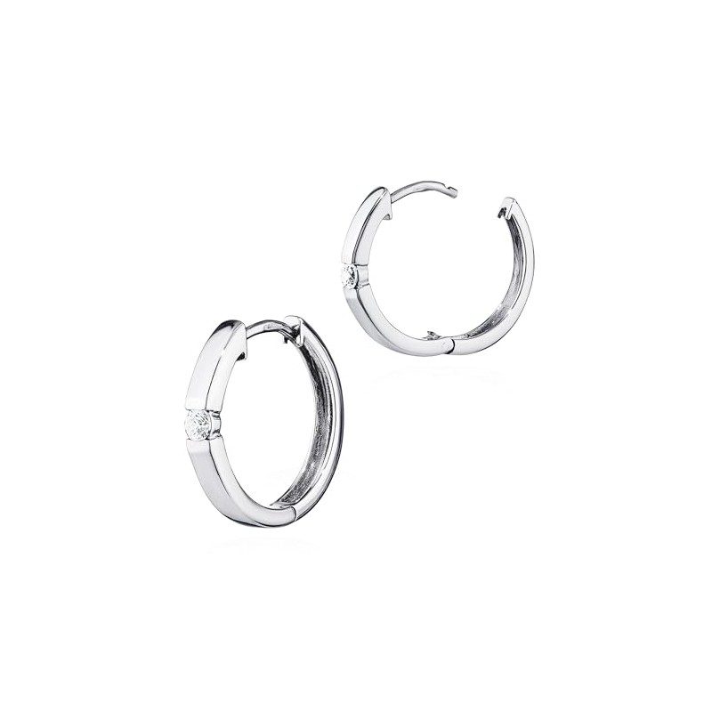 NKlaus Silver Pair of 925 Sterling Silver Hinged Hoop Earrings Zirconia Shiny Rhodium-Plated 16.2 mm 4781, Sterling Silver