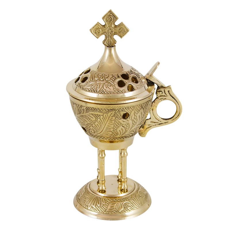 NKlaus Smoke burner with hinged lid and cross 18 cm high brass gold incense burner operating mode smoking charcoal on sand decoration 4018
