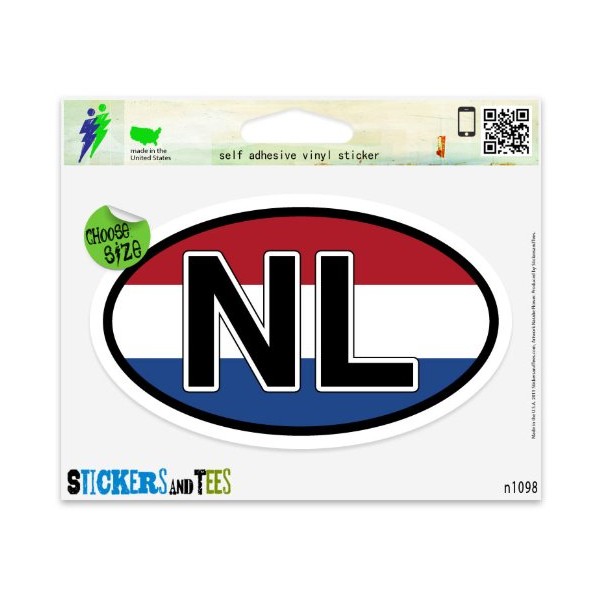 NL Netherlands Flag Oval Vinyl Car Bumper Window Sticker 5" x 3"
