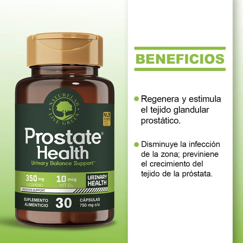 Naturelab® Prostate Health® es un suplemento diseñado para apoyar la salud de la próstata. Desarrollado tras años de investigación, contiene una mezcla de ingredientes como Saw Palmatto, extracto de Ciruela Africano, Semilla de Calabaza, Ortiga, Extracto de fruto de Guaraná, Zinc y Vitamina D3. Estos componentes son reconocidos por sus propiedades que pueden contribuir a la prevención del cáncer de próstata, reducir la inflamación y actuar como tratamiento complementario en casos de hiperplasia benigna de próstata.