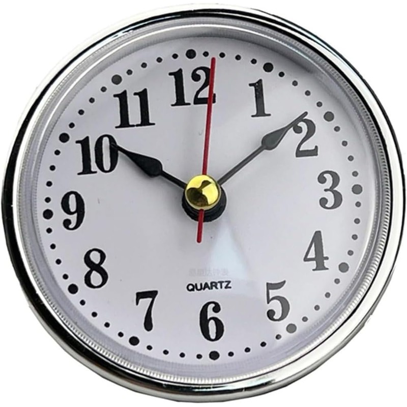 Nlinlin Mini Silver Clock Insert, 2-1/2Inch 65mm Round Quartz Movement, White Face with Silver Tone Arabic Numerals Clock Hardware