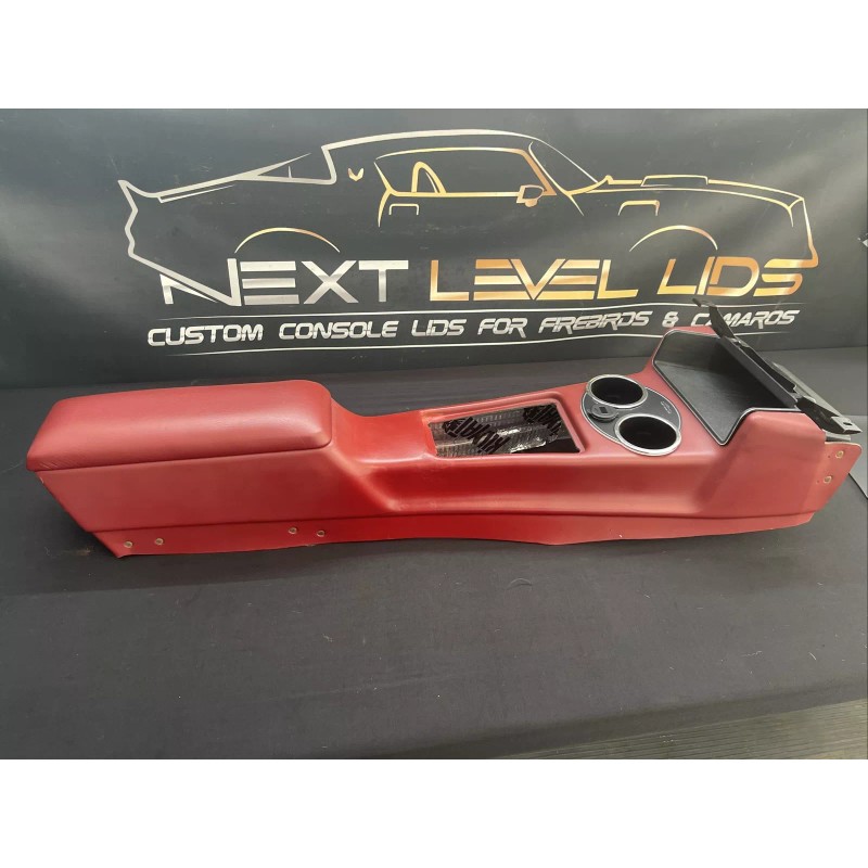 1971-81 FIREBIRD TRANS AM & CAMARO CONSOLE LID CARMINE RED REAL LEATHER CUSTOM MADE.