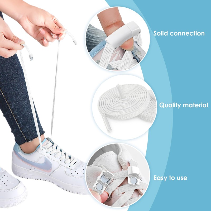- INNOVATION AND SPEED Our revolutionary elastic laces eliminate the need to tie knots. With a magnetic quick release system, they turn any shoe into a slip-on, dramatically reducing the time you need to prepare. Length of 100 cm for individual adjustment to any shoe or foot.