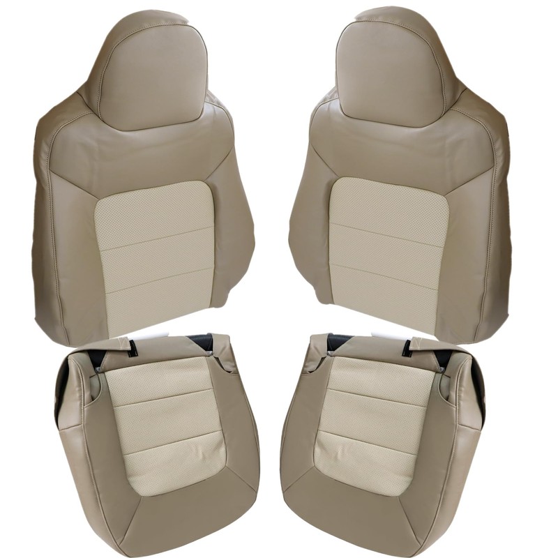 NLQR Driver and Passenger Side Bottom & Top Back Replacement Seat Covers Microfiber Leather Tan Compatible with Ford Expedition 2003 2004 2005 2006