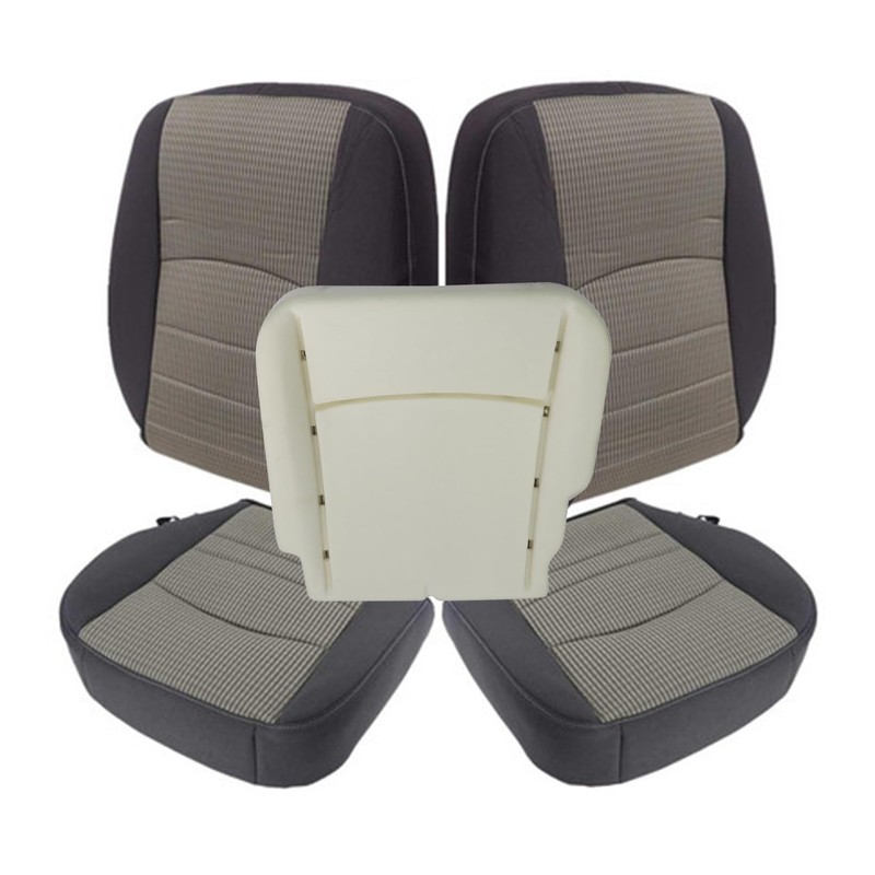NLQR Front Driver & Passenger Side Bottom & Top Lean Back Replacement Cloth Seat Covers & Driver Side Foam Cushion Compatible with Dodge Ram 1500 2500 3500 4500 5500 SLT 2009 2010 2011 2012 Gray
