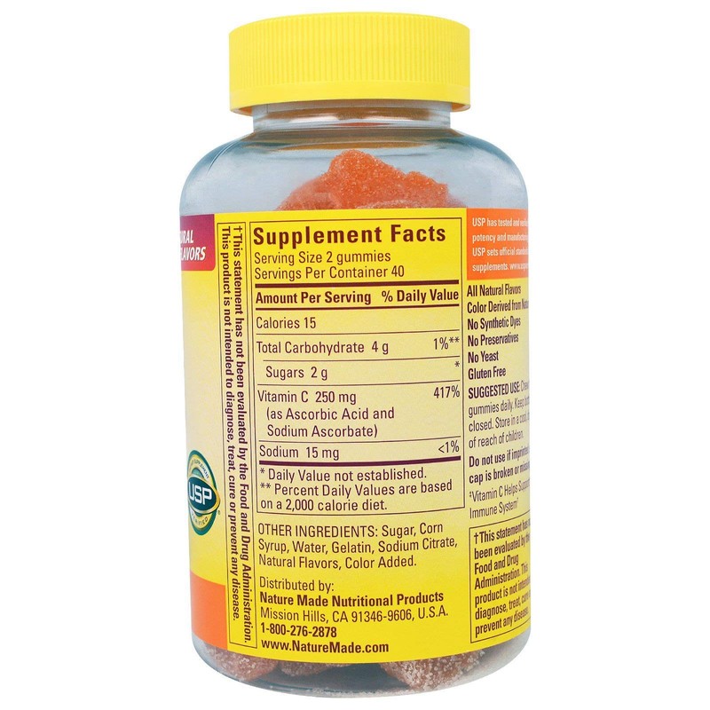 - made with natural fruit flavors that adults prefer natural made adult gummies are a great tasting way to take your vitamins. we're so sure you'll love the taste. vitamin c adult gummies are made to nature made's purity and potency standards.