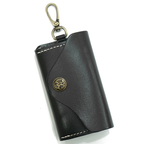 NM Element Men's Vintage Trifold Key Case, Genuine Leather, Carabiner, leather black